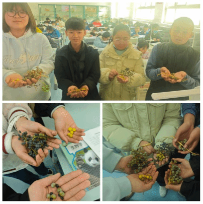 围绕“种子如何发育成新植物”,同学们采集了校园里的槐树、女贞、栾树、银杏等种子,完成了解剖观察。从“种子浸泡→外部形态观察→内部结构识别”的完整过程,不仅识别了胚根、胚芽、胚轴、子叶等结构,还对比了“双子叶植物”和“单子叶植物”的种子差异,部分小组还做了“种子萌发的环境条件”对照试验,把观察升级为探究。