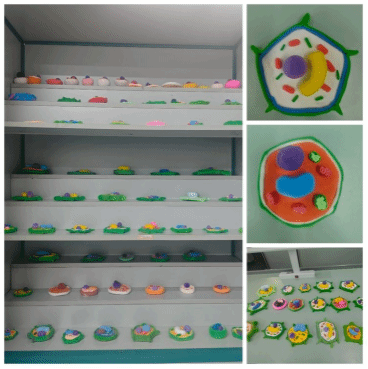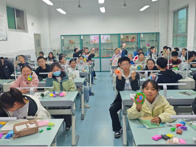 光有观察还不够,为了更直观地掌握细胞结构,同学们发挥创意,用橡皮泥、彩色黏土、牙签等常见材料,制作了立体细胞模型,清晰呈现了细胞壁、细胞核、液泡等结构,然后进行小组评比,选出最佳作品进行展示。这些亲手制作的模型,不仅颜色鲜艳、结构清晰,更承载着同学们对知识的理解,让抽象的生物概念变得生动可触。