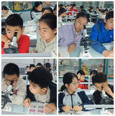 为了揭开“生物体结构”的神秘面纱,同学们采集了校园里的女贞、月季等植物叶片,走进实验室开展显微镜观察实验。从制作临时装片时的小心翼翼,到调节显微镜时的屏息凝神,大家一边观察,一边绘制细胞结构示意图,把微观世界的模样定格在纸上,也终于理解了“细胞是生物体结构和功能的基本单位”这一概念的内涵。
